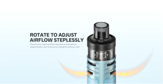 Die 360° stufenlose Rotation zur Einstellung des Luftstroms am Pod ermöglicht es Ihnen, den gewünschten Luftstrom ohne weitere Schritte frei zu erhalten. Die beiden Luftschlitze sind stufenlos gestalte., Das bedeutet, dass die BenutzerInnen den gewünschten Luftstrom frei einstellen können. Dieses Design ermöglicht es den BenutzerInnen, frei zwischen MTL (Mouth-to-Lung) und DTL (Direct-to-Lung) zu wechseln und ein erstklassiges Erlebnis zu haben.
