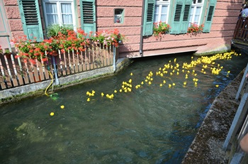 Jahre später wurde ein „Schönheitswettbewerb“ ausgelobt. Die am schönsten gestalteten Enten wurden in einer Sonderprämie ausgelobt. Nicht zu vergessen sind die Kommentatoren,die in den 25 Jahren das Entenrennen vom Start bis zum Ziel mit vielen originellen Sprüchen bereicherten.Am Sonntagabend fand dann immer die Preisverleihung auf dem Rathausplatz statt,alle haben mitgefiebert ob ihre Nummer bei den Gewinnern ist. Der Umwelt zuliebe werden die eingefangenen Enten eingelagert und im darauffolgenden Jahr wiederverwendet,so müssen immer nur wenige Enten nachbestellt werden.Wie geht es mit dem Entenrennen weiter?Inzwischen hat der Homöopathische Verein die Schirmherrschaft für das Entenrennen übernommen. Nummernvergabe,eintüten,zu den verschiedenen Verkaufsstellen in die Geschäfte bringen,wieder abholen und den Verkauf am Stadtfest organisieren u.v.a. Da es meist Kinder und Jugendliche oder Großeltern sind,die für ihre Enkel Enten kaufen,soll das Augenmerk bei der Preisauswahl dem Käuferpublikum angepasst werden. Aus diesem Grund werden für das Entenrennen Sponsoren gesucht,um dann gezielt gute Preise ausloben zu können.Text: Doris MayerPM Stadtverwaltung Süßen