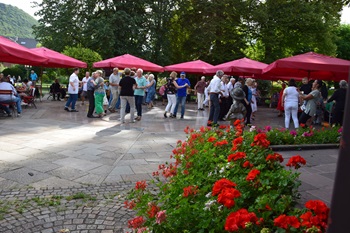 Die Veranstaltung begann mit der Begrüßung und Eröffnung der Tanzfläche durch Annika Gairing,Leiterin der örtlichen Tourist-Information. Sie freute sich,dass so viele Besucher der Einladung in den Kurpark gefolgt waren.