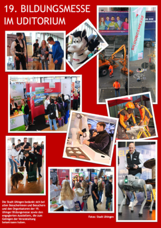 Vertreter von 73 Firmen im und vor dem Uditorium warben für ihr Unternehmen als Ausbildungsplatz in unterschiedlichen Bereichen: Handwerk,Gewerbe und Industrie,Pflege- und Sozialbereich,Dienstleistungssektor,Schulen und Verwaltungen des öffentlichen Dienstes – wie die Stadt Uhingen und die Kindertageseinrichtungen der Stadt Uhingen. Bei der seit dem Jahr 2005 stattfindenden Messe fanden sich neben etablierten „Stammgästen“ auch Neulinge,die erstmals diese Plattform nutzten,um Auszubildende zu finden.