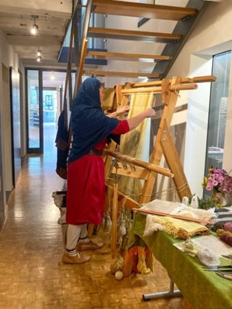 In diesem Jahr war das besondere Thema,wie die Alamannen in ihrem Dorf lebten. Am Eingang und im im Erdgeschoss des Museums konnten die Alamanni und ihre Freunde ihre Gäste begrüßen. Gyde Botsch zeigte den wissbegierigen Zuschauern anhand eines Modells,wie die Häuser zu Alamannenzeit aussahen und wie die Dörfer entstanden. Denis Beck erklärte anhand einiger Beispiele die Verarbeitung von Holz. Felix Hallmann hatte viel Leder dabei und zeigte die Herstellung von Ledergürteln. Daniel Kollmus stellte einen sogenannten Ringpanzer her. Dem Laien ist das als Kettenhemd bekannt. Die Ringe für diesen Ringpanzer stellte Ulf Böttcher her. Jürgen Heinritz gab den Besuchern einen Einblick in das Luxusleben in der Alamannenzeit und an beiden Tagen gab es eine biografische Familienführung mit ihm durch die Ausstellung des Museums. Seine Frau Doris unterstützte ihn bei der Präsentation vom Luxusleben. Doro Braun-Zeuner hatte ihre Färbesachen mitgebracht. Es gab tolle Einblicke,wie bunt das Leben zur Zeit der Alamannen war und wie die bunten Farben erreicht wurden. Nebenbei webte sie Bänder mit Kammweben. Michel Zeuner unterstützte seine Frau und unterhielt die Gäste mit seiner Leier. Esther Schneller zeigte das Spinnen mit einer Handspindel. Antje Poppitz gab einen Einblick in die Verarbeitung der Wolle und webte am Gewichtswebstuhl. Daniela Bittner vervollständigte die Textilecke mit Brettchenweben. Hier durften Interessierte auch die Technik ausprobieren. Die Alamanni und ihre Freunde freuten sich über zahlreiche interessierte Besucher und beantworteten geduldig deren Fragen. Das Alamannen-Forum zielte auch in diesem Jahr auf das Leben an der Jagst ab. Zur Unterstützung des Museums hat sich um Jürgen Heinritz eine kleine Gruppe von Geschichtsdarstellern gesammelt,die als „Alamanni“ Geschichte erlebbar machen wollen,natürlich nach besten wissenschaftlichen Erkenntnissen. Museumsleiter Gut sieht die „Alamanni“ als Botschafter des Museums.