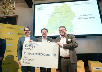 Für ihr Engagement im Klimaschutz und nachhaltiger Stadtentwicklung wurde die Stadt Eislingen mit dem renommierten European Energy Award (eea) ausgezeichnet. Mit einer Zielerreichung von 64,3 Prozent beweist die Stadt,dass entschlossenes Handeln und kontinuierliche Maßnahmen messbare Erfolge bringen. Oberbürgermeister Klaus Heininger und der Beauftragte für klimaneutrale Kommunalverwaltung,Felix Stiebler,nahmen die Auszeichnung in einer feierlichen Verleihung in Freiburg von Staatssekretär Dr. Andre Baumann entgegen.