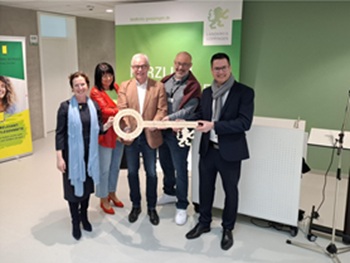 Die SchulleiterInnen der drei beteiligten Berufsschulen,Markus Zimmermann (Kaufmännische Schule),Ilse Messerschmid (Gewerbliche Schule) und Gabriele Braun (Emil-von-Behring-Schule) fühlen sich jetzt schon wohl in den neuen Räumlichkeiten,und das,obwohl noch keine Bilder an den Wänden hängen. Aber die Räumlichkeiten werden jetzt nach und nach mit Leben gefüllt. Der Umzug der Fach- und Laborräume sind schon weitgehend abgeschlossen.
