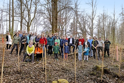 500 neue Bäume in Uhingen und Deggingen dank Aktion des Landratsamts Göppingen. Mitarbeitende des Landratsamts und Kreissparkasse Göppingen spenden und pflanzen Bäume für den Klimaschutz.