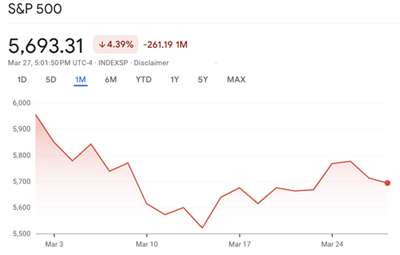 Vieles hat sich in den letzten 2 Monaten nach Trumps Amtseinführung am 20. Januar 2025 verändert. Die von Präsident Trump verhängten Zölle gegen China und andere wichtige Handelspartner haben zu erheblicher Volatilität am Aktienmarkt geführt,mit einem Einbruch von knapp 4,4 % des S&P 500 allein im letzten Monat (Stand: 28. März 2025).