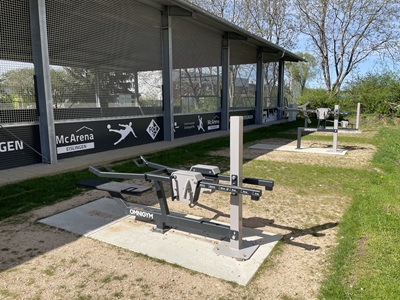 Fotos (Bildquelle: Stadt Eislingen): Drei Freiluft-Fitnessgeräte stehen zwischen der McArena und dem FC Vereinsheim kostenlos zur Verfügung