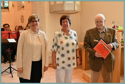 Im Rahmen der Konzertveranstaltung am 10.05.25 bedankten sich die Musikvereinigung GP-Holzheim und die Sängerabteilun TV Holzheim von Frau Pfarrerin Müller Volz,die in den Ruhestand gehen wird.