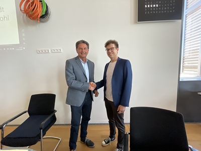Foto (Bildquelle: Stadt Eislingen): Oberbürgermeister Klaus Heininger begrüßte Christian Herr (r.) als neues Mitglied im Gemeinderat