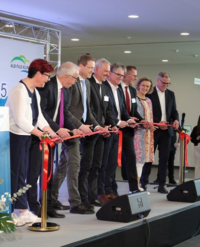 Nach sechsjähriger Bauzeit war es heute (15.05.2025) soweit: Das neue ALB FILS KLINIKUM in Göppingen wurde mit einer offiziellen Veranstaltung eingeweiht. Es markiert einen bedeutenden Meilenstein in der Gesundheitsversorgung der Region. Der medizinisch-pflegerisch wie auch architektonisch hochmoderne Klinikneubau ist in der Stadt Göppingen auf dem Campus „Auf dem Eichert“ angesiedelt. Dieser Campus umfasst neben dem Klinikgebäude ein Ärztehaus,mehrere Personalwohngebäude,eine Kindertagesstätte,ein Parkhaus und ab dem kommenden Jahr ein Bildungszentrum mit Sozialpädiatrischem Zentrum. Damit geht eines der größten Bauprojekte der vergangenen Jahre in Baden-Württemberg seinem Abschluss entgegen. Es sichert eine zukunftsfähige und nachhaltige Gesundheitsversorgung,die den Bedürfnissen der Patientinnen und Patienten im Landkreis Göppingen und darüber hinaus heute und in den kommenden Jahren gerecht werden wird.