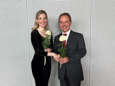 Musik von Elgar bis Bernstein – ein abwechslungsreiches ProgrammDas Konzert selbst bot eine breite stilistische Palette und viel Spielfreude der Lehrkräfte – unterstützt durch charmante Moderationen mit wissenswerten Einblicken zu den Werken.Den Auftakt bildete ein Gitarrenmedley von Sevan Boyaciyan,gefolgt von Edward Elgars romantischem „Salut d’Amour“,ursprünglich ein Liebesgruß an seine spätere Frau. Mit „Strangers on the Shore“ von Acker Bilk wurde es melancholisch: eine Klarinettenmelodie,die 1961 Weltruhm erlangte. Die „Berühmte Aria“ von E. Paudert entführte das Publikum mit klassischem Glanz,während Gabriel Faurés „Sicilienne“ mit zarter Eleganz französische Klangkunst zelebrierte.Mit dem Bossa-Klassiker „The Girl From Ipanema“ von A.C. Jobim und dem brasilianischen Hit „Brasil“ von Ary Barroso nahm das Programm lateinamerikanische Züge an. Dennis Armitages „Latin Flavour“ vereinte schließlich alle Lehrkräfte auf der Bühne und bot rhythmische Vielfalt voller Lebensfreude – ein kraftvoller Abschluss des ersten Konzertteils.In der Pause nutzten die rund 200 Besucherinnen und Besucher die Gelegenheit zum Austausch bei Getränken und Gesprächen – bevor es rhythmisch und schwungvoll in die zweite Konzerthälfte ging.Rhythmus,Temperament und eine Prise HumorDer zweite Teil startete mit einer Eigenkomposition von Jürgen Reiß: „AIN’T IT RICH – plus a bissle von mir“,ein humorvoll-persönliches Werk mit viel Rhythmus und Herz. Es folgte „Wake Up“ von Tilman Dehnhard – ein energiegeladenes Stück geschrieben für Piccoloflöte und Wecker,das den Saal sofort in Aufbruchstimmung versetzte.Mit dem folkloristischen „Casatschok“ wurde das Publikum in die russische Tanzwelt entführt,bevor Leonard Bernsteins „Elegy for Mippy II“ für Solo-Posaune mit seiner augenzwinkernden Ernsthaftigkeit überraschte. Die temperamentvollen „Spanischen Tänze Nr. 2“ von Moritz Moszkowski führten klanglich nach Süden,während ein zweites Gitarrenmedley von Sevan Boyaciyan erneut das Talent an den Saiten präsentierte.Mit dem stimmungsvollen Arrangement „Rayo del Sol“ – zu Deutsch: Sonnenstrahl – verabschiedeten sich die Lehrkräfte gemeinsam mit lateinamerikanischem Esprit vom offiziellen Programm.Natürlich durfte eine Zugabe nicht fehlen: Die „Tarantella napoletana“,ein rasantes süditalienisches Volkslied,sorgte für ein beschwingtes Finale und begeisterten Applaus.Dank und AusblickZum Abschluss bedankte sich Yvonne Kolberg herzlich beim gesamten Kollegium für dessen pädagogisches Engagement und die gemeinschaftliche Konzertvorbereitung. Ihr Dank galt außerdem dem Team des Uditoriums für Technik und Betreuung hinter den Kulissen,der Kreissparkasse Göppingen für die Förderung der musikalischen Bildung – und nicht zuletzt dem Publikum für dessen Aufmerksamkeit und Unterstützung.„Bleiben Sie uns verbunden – als Lernende,als Eltern,als Zuhörer oder als Musikliebhaber“,so Kolberg. Ein Wiedersehen ist bereits in Aussicht: Beim großen Sommerkonzert der Musikschule am Freitag,11. Juli 2025 um 17 Uhr im Uditorium.Mitwirkende Lehrkräfte:Lidiia Baryshevska – KlavierSevan Boyaciyan – GitarreKatrin Köble – Akkordeon,Klavier,KeyboardYvonne Kolberg – QuerflöteAlexander Nischwitz – Klarinette,SaxophonJürgen Reiß – SchlagzeugChristof Reyher – Trompete,Posaune,HornBirgit Richter – Blockflöte,Musikalische FrüherziehungBeatrice Schrack – Klavier,KeyboardJaroslaw Wakarecy – KlavierInfo: Wer ein Instrument erlernen oder mehr über das Angebot der Musikschule Uhingen erfahren möchte,erhält weitere Infos auf https://www.uhingen.de/musikschule im Internet.Fotos (Stadt Uhingen) oben: Herzliche Übergabe: Jaroslaw Wakarecy übergibt die Leitung der Musikschule an Yvonne Kolberg; unten: Mit Spielfreude und Professionalität: Das Kollegium der Musikschule Uhingen im KonzertPM Stadtverwaltung Uhingenoto: