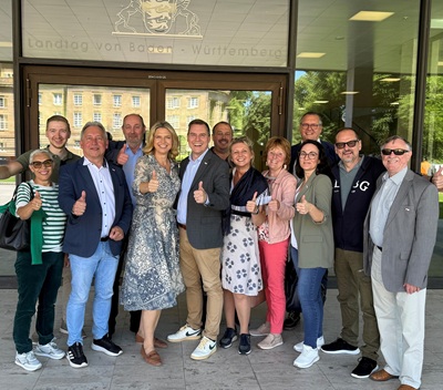Am Rande des diesjährigen Maientags konnte die Göppinger CDU-Landtagsabgeordnete und Stadträtin Sarah Schweizer am vergangenen Freitag eine elfköpfige Delegation aus der niederösterreichischen Partnerstadt Klosterneuburg um Bürgermeister Christoph Kaufmann im Landtag von Baden-Württemberg begrüßen. Neben seinem kommunalen Mandat vertritt Kaufmann als Mitglied der christdemokratischen ÖVP-Fraktion Klosterneuburg bereits seit 2016 im Landtag von Niederösterreich.