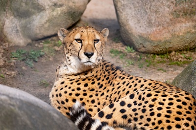 Foto (© Wilhelma Stuttgart/Birger Meierjohann): Die Patenschaft von solutio gilt für Haraka,einen sechsjährigen Geparden. Er teilt sich eine Anlage mit seinem Bruder Zawadi.