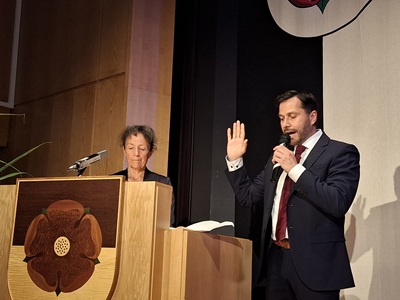 Eigenschaften,die von allen Rednerinnen und Rednern anlässlich der Vereidigung und Verpflichtung des neuen Oberbürgermeisters Ignazio Ceffalia hervorgehoben wurden. Die Erwartungen sin unermesslich hoch: als der neue Oberbürgermeister die Bühne der Jahnhalle zur Vereidigung durch die 1,ehrenamtliche Stellvertreterin des Oberbürgermeisters betrat wurde es mit einem Applaus bedacht,wie ihn sonst nur großen Stars oder Politgrößen zuteilwird.