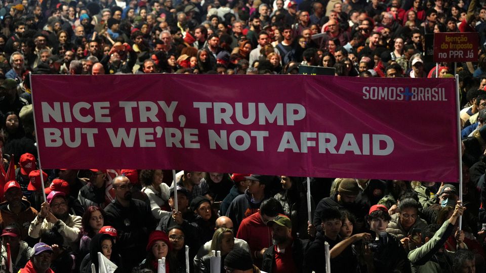 Protest gegen Trump in der brasilianischen Stadt São Paulo: Der US-Präsident hat für Einfuhren aus dem südamerikanischen Land Zölle in Höhe von 50 Prozent angekündigt