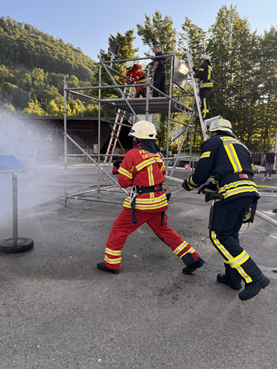 Bei sommerlichen Temperaturen zeigten die Einsatzkräfte eindrucksvoll,wie professionell sie auch unter Zeitdruck agieren: Löschangriffe,Menschenrettung und technische Hilfeleistungen mussten in festgelegter Zeit und unter den prüfenden Blicken der Wertungsrichter durchgeführt werden.