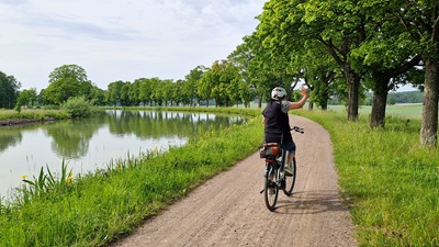 Foto (Stadt Uhingen): Manche Teilnehmende sammeln nicht nur in und um Uhingen fleißig Kilometer,sondern auch im Urlaub in Schweden. Dort waren die Eheleute Ulrike und Wolfgang Schall beispielsweise auf dem Göta-Kanal unterwegs.