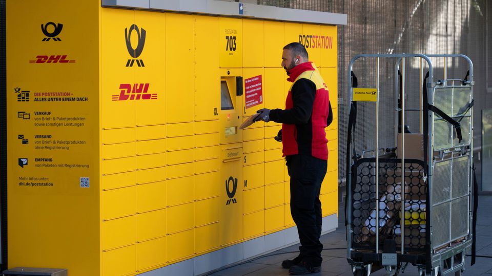 DHL-Mitarbeiter an Packstation in Bonn: EBIT im ersten Halbjahr bei 447 Millionen Euro