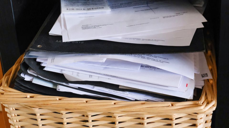 Aktenberge mit Dokumenten für die Steuererklärung