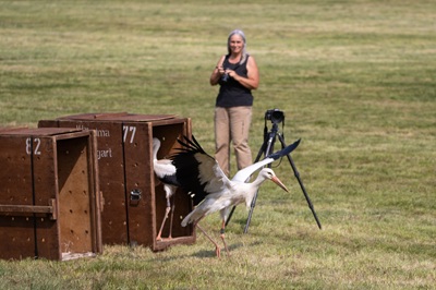 Die Freilassung der in der Wilhelma aufgezogenen Störche war von Erfolg gekrönt. Bereits wenige Minuten nach dem Verlassen der Transportkisten gesellten sie sich zu einigen Artgenossen,die sich auf der Wiesenfläche aufhielten. Auch am Folgetag konnte Vaas sie beobachten,wie sie inmitten teils größerer Gruppen von Störchen auf Beutefang gingen.