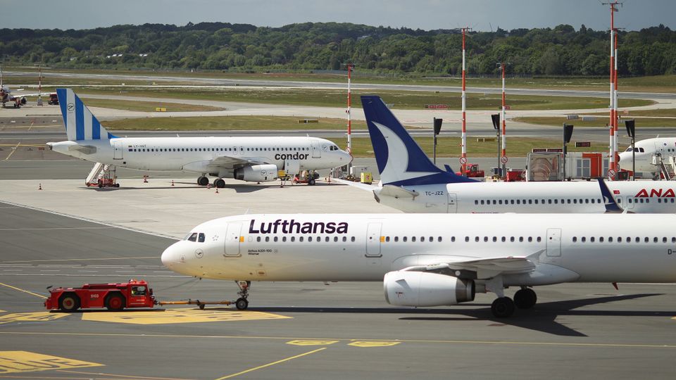 Maschinen der Fluglinien Condor und Lufthansa (auf dem Flughafen Hamburg-Fuhlsbüttel)