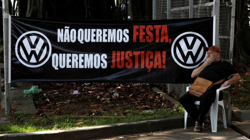 Ex-Mitarbeiter vor einer VW-Fabrik in Sao Bernardo do Campo: Schuldknechtschaft und bewaffnete Überwachung