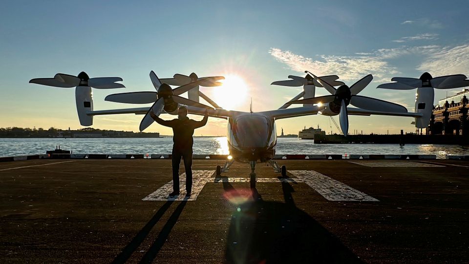 Experimentelles Lufttaxi des US-Herstellers Joby in Manhattan: Sechs Rotoren an den Flügeln und am Heck