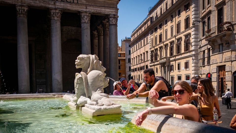 Passanten kühlen sich an einem Brunnen in Rom ab (Archivbild)