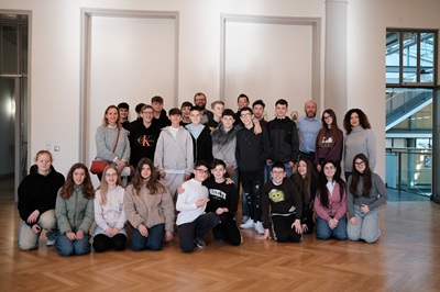 Foto 1(Stadt Göppingen): Die Schülergruppe des Frankreichaustauschs des Freihof-Gymnasiums