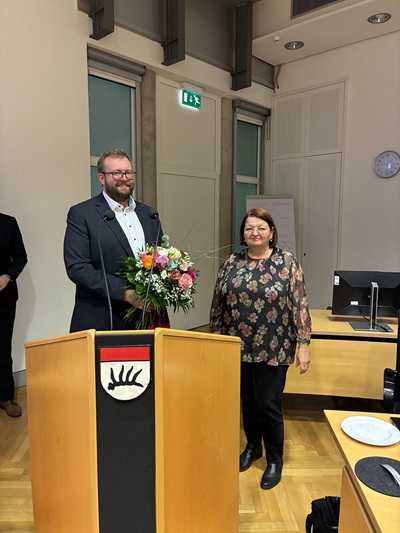 Baden-Württemberg unterstützt die Sanierung der Burg Helfenstein in Geislingen an der Steige mit 76.240 Euro aus dem Denkmalförderprogramm 2025. Foto: Ignazio Ceffalia (links), Oberbürgermeister der Stadt Geislingen an der Steige, und Ministerin Nicole Razavi (rechts) Die Ministerin für Landesentwicklung und Wohnen, Nicole Razavi, überreichte an Ignazio Ceffalia, Oberbürgermeister der Stadt Geislingen an der Steige, einen symbolischen ...